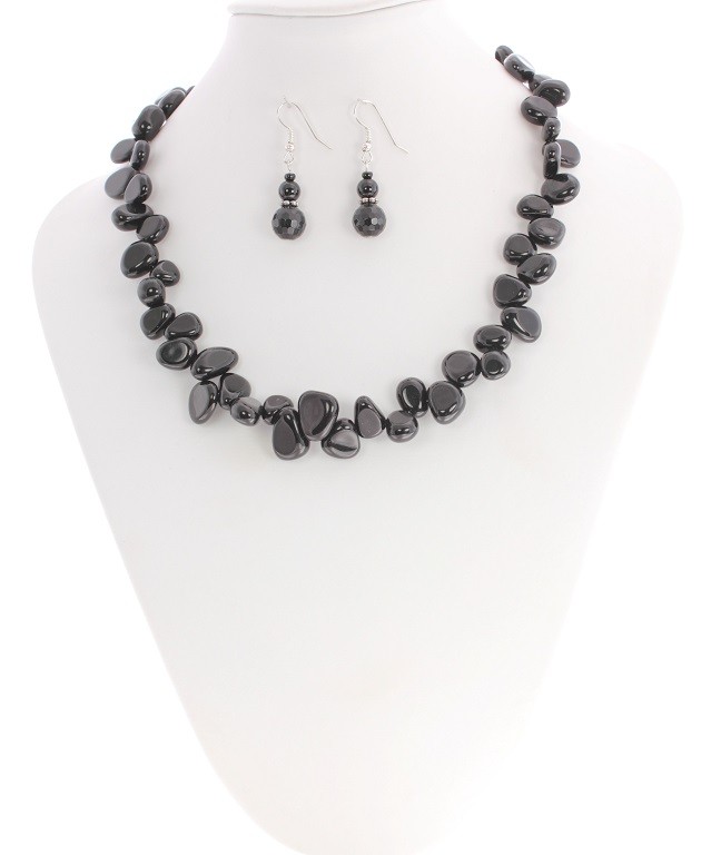 Black Onyx Necklace with stones in beautiful natural petal shapes. All stones with nothing else! Very holistic and simple, yet a striking design.