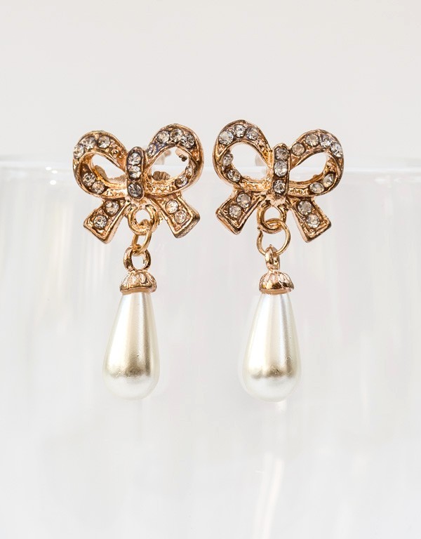 Sunday, July 27, 2014 11:13 am 4k Vintage style bow earrings with gold plated surround and pearl drop.