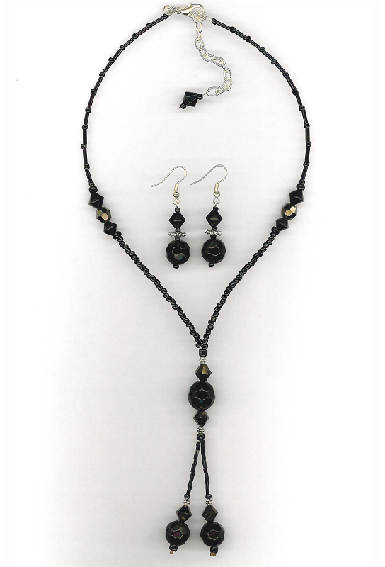 Dancing Girl Black Necklace is made from black seed beads with crystals and silver dipped spacers.