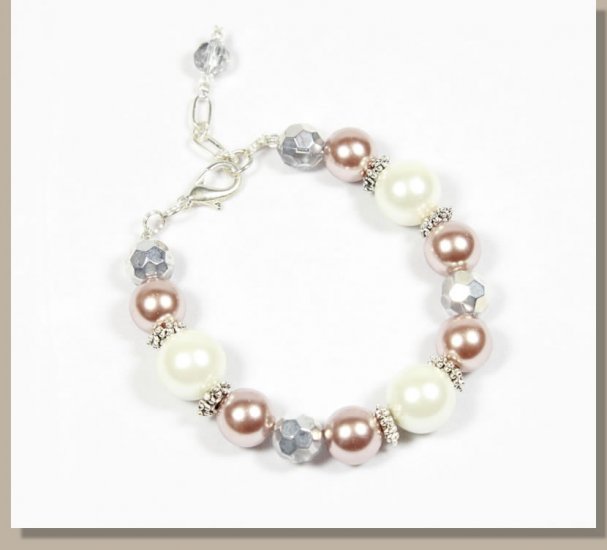 Beautiful Glass Pearl Bracelets with ext chain for adjustable length. These Bracelets are perfect for Clothing Boutiques or as Wedding Gifts for bridesmaids or a gift for the mother of the bride. Each Bracelet has silver crystals and silver spacers and makes a perfect classical bracelet gift.