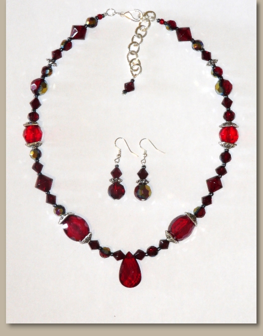 Beautiful red facetted Crystal Necklace with crystal pendant.
