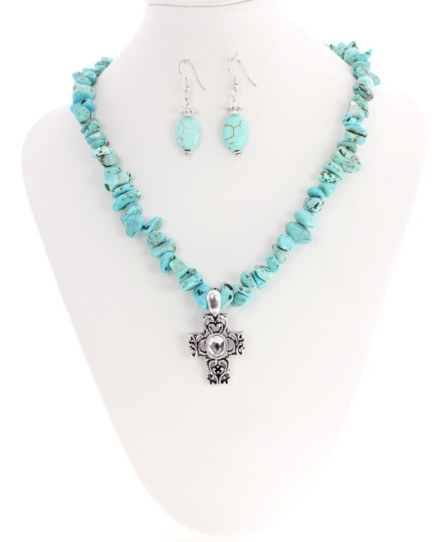 Looking for Christian Jewelry Gifts? Beautiful Turquoise Cross Necklace with adjustable extension chain and secure clasp. The cross is Tibetan silver with a copper base. This item makes a beautiful gift semi precious stone gift to be treasured always.
